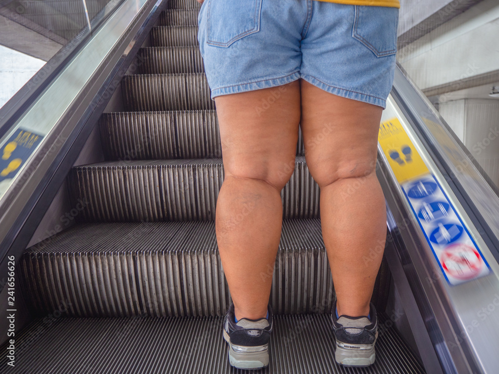Fat women in clearance short shorts, fat women leg standing on escalator Stock Photo Adobe Stock clearance