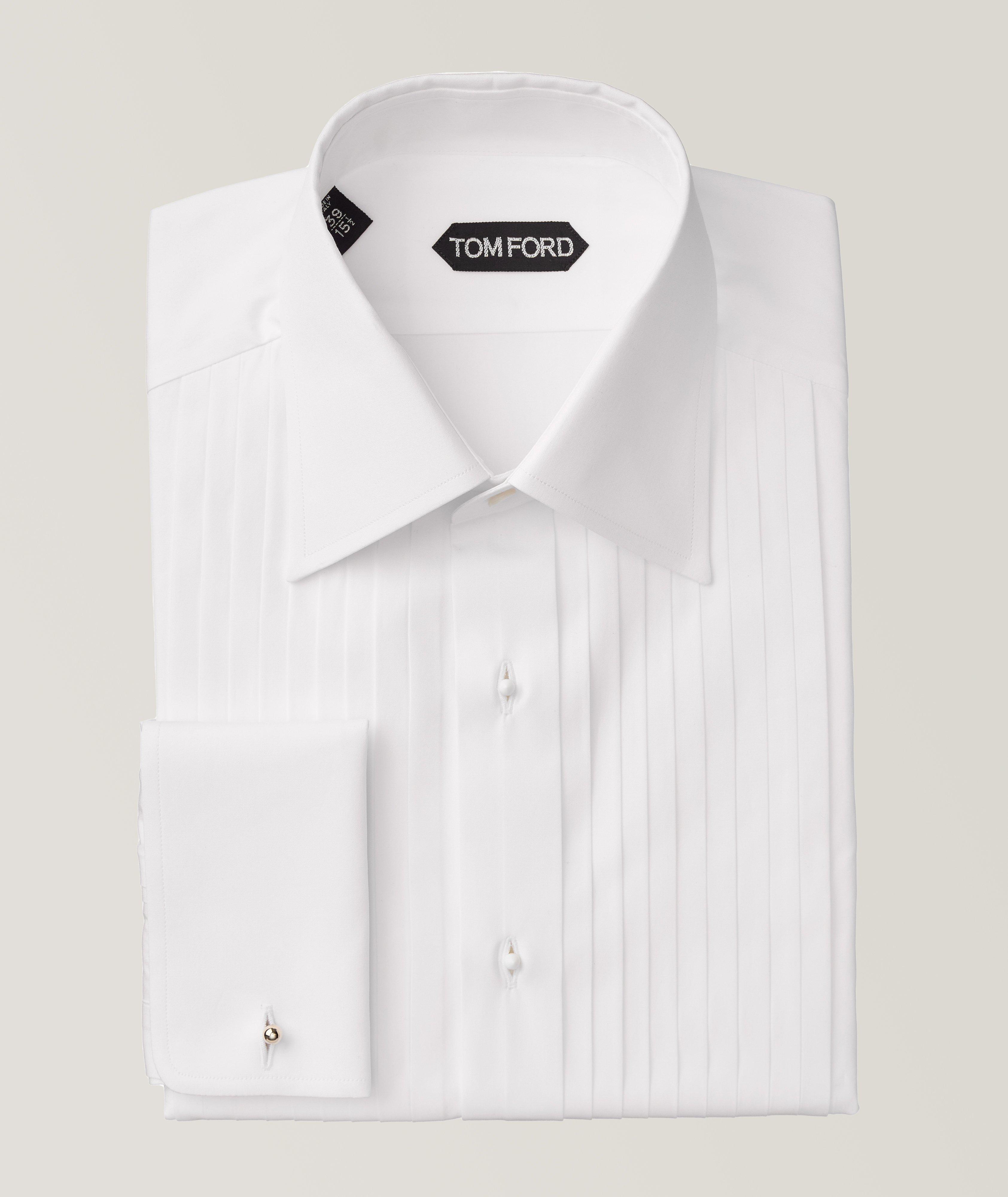 White clearance evening top, TOM FORD Slim Fit Front Pleated Cotton Evening Shirt Dress clearance
