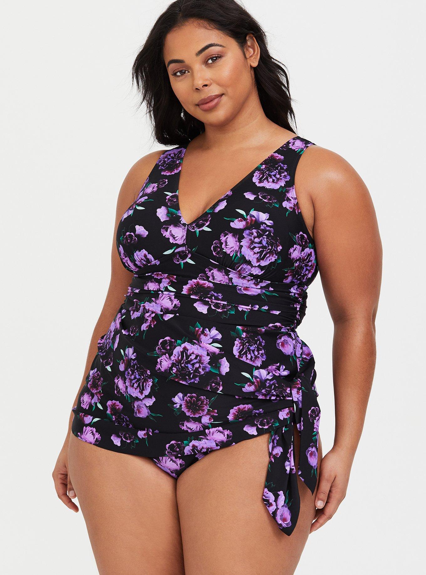 One piece swimdress clearance with shorts, Plus Size Wireless Short Asymmetrical Swim Dress With Brief Torrid clearance