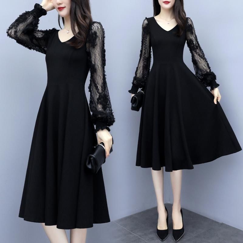 Shopee clearance lace dress, Women s Plus Size medium length lace long sleeve casual dress clearance