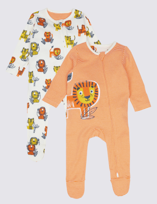 2 Pack Lion Pure Cotton Zip Sleepsuits M S