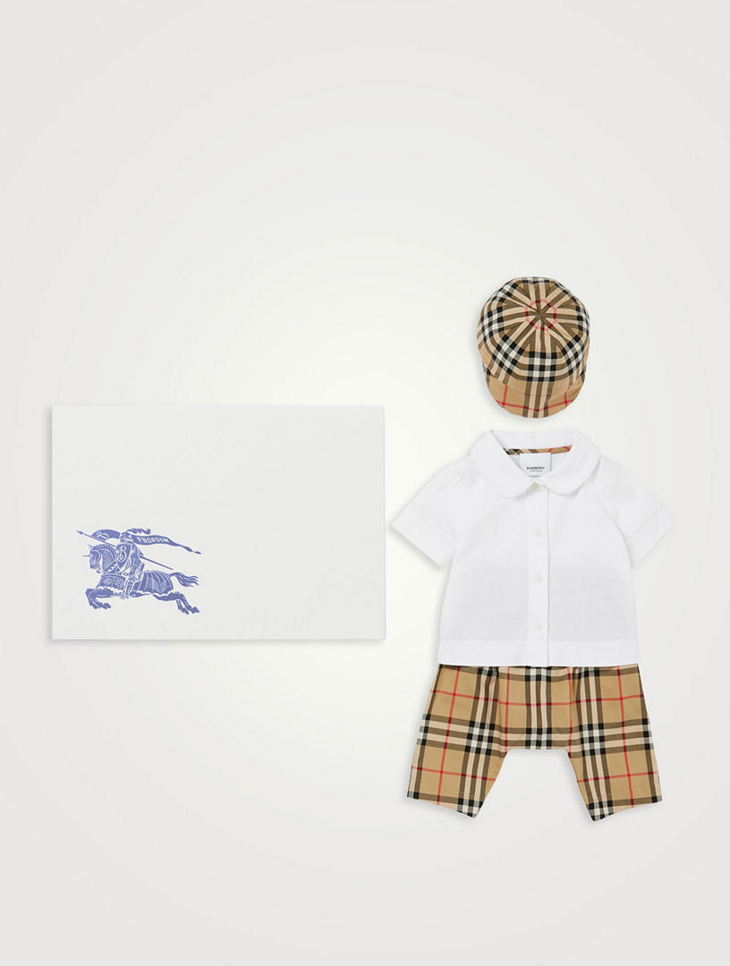 Three Piece Cotton Check Baby Gift Set