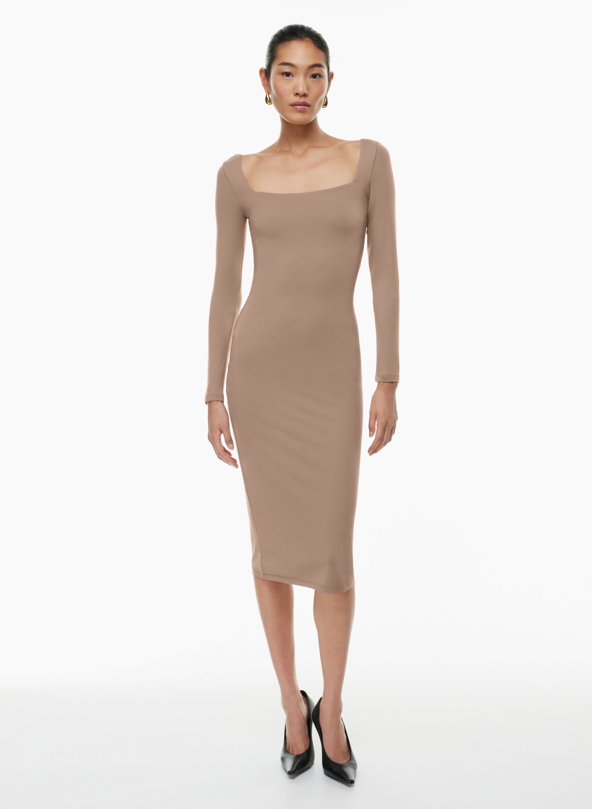 Nude long sleeve clearance dress, Contour CONTOUR SQUARENECK LONGSLEEVE MIDI DRESS Aritzia CA clearance