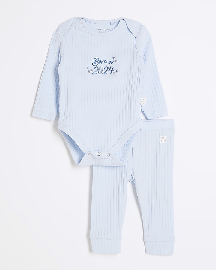 River island baby clearance boy suit, Baby Boys Organic Ribbed Outfit Blue clearance
