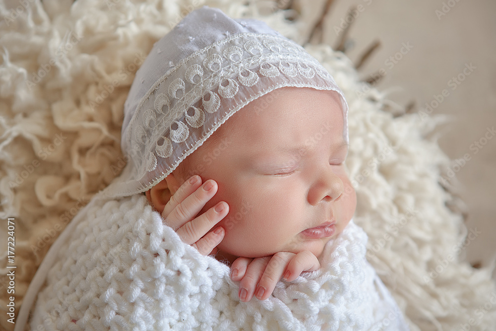 Amazing newborn baby sleeping beauty enjoying first days in her