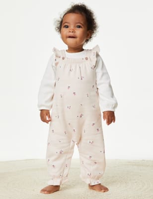 M&s baby girl clearance snowsuit, 2pc Cotton Rich Floral Dungarees Outfit 0 3 Yrs M S CA clearance