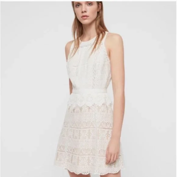 NWT ALL SAINTS Lace Pattern Melia Mini Dress in oyster white Size 4 EU 36