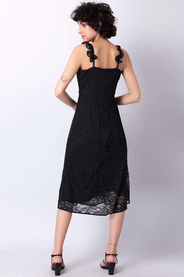 Buy FABALLEY Black Solid Blended Women s Midi Dress Shoppers Stop