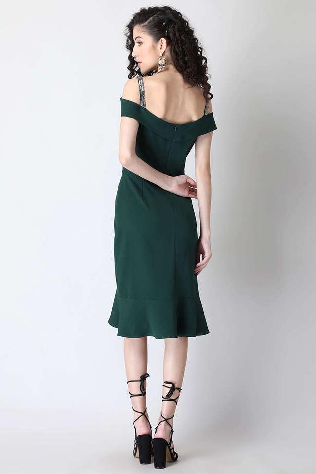 Buy FABALLEY Green Embellished Sweetheart Neck Polyester Blend