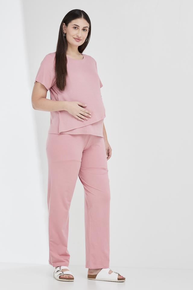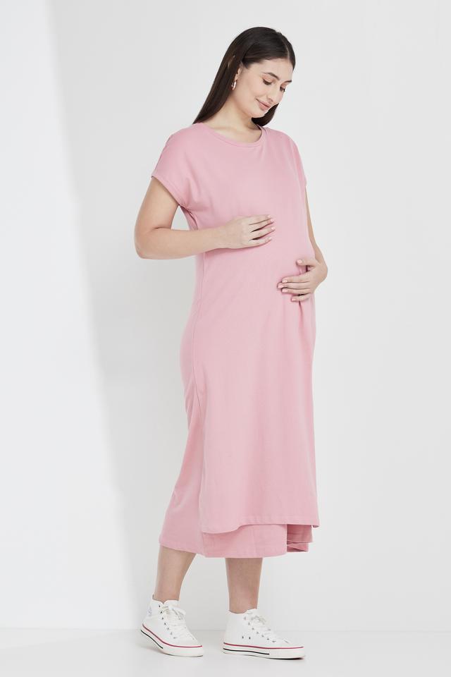 Shoppers stop maternity clearance wear, Buy INSENSE Dusty Pink Solid Relaxed Fit Cotton Stretch Women s clearance