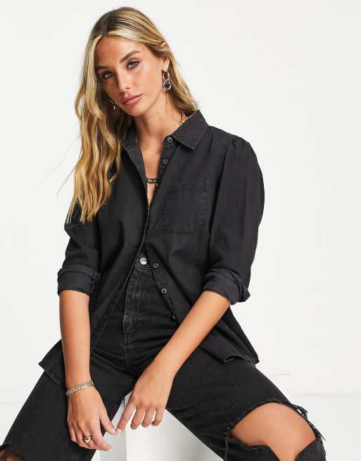 ASOS DESIGN soft denim puff sleeve shirt in washed black