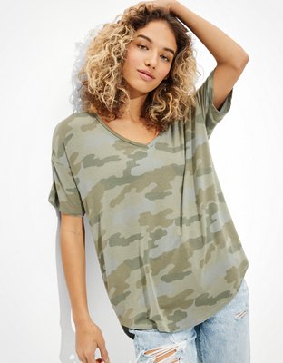 American eagle soft clearance and sexy shirt, AE Oversized Soft Sexy Camo V Neck T Shirt clearance