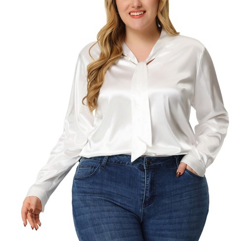 Agnes Orinda Women s Plus Size Work Office Formal Tie Neck Satin