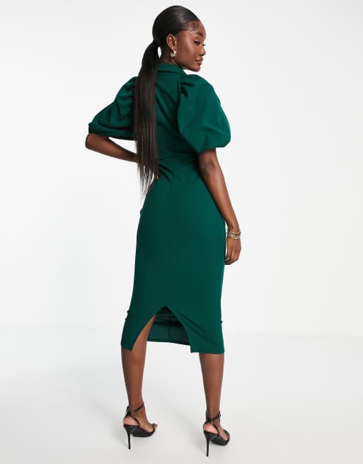 Bottle green midi clearance dress, AX Paris Dark Green Batwing Sleeve Midi Dress New Look clearance