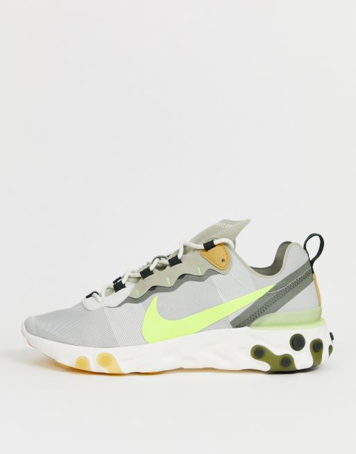 Nike react element 55 clearance trainers in grey and green, Nike React Element 55 clearance