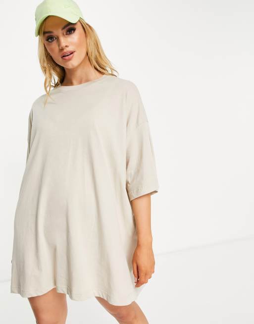Weekday Huge cotton oversized t shirt dress in beige BEIGE