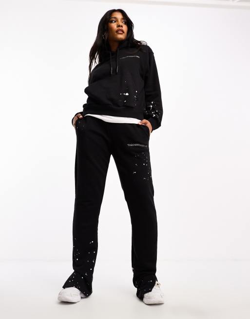 Couture club womens clearance tracksuit, The Couture Club paint splatter straight leg jogger in black ASOS clearance