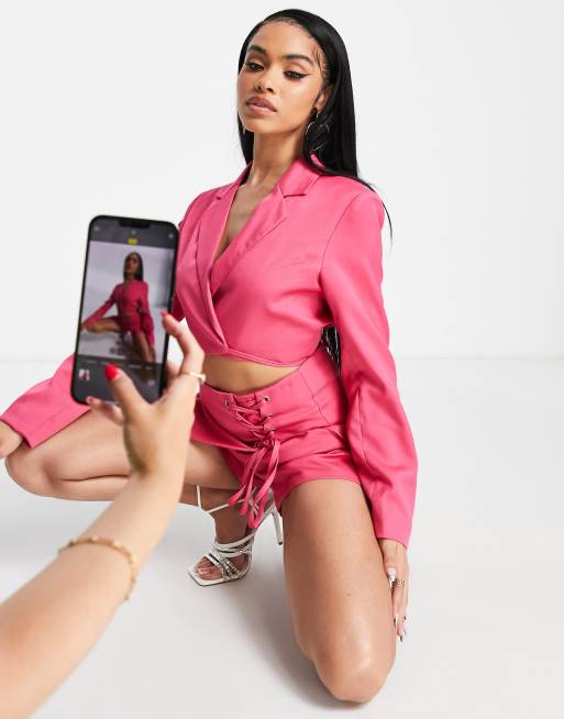 Hot pink blazer clearance and shorts, Unique21 tie front cropped blazer shorts set in pink ASOS clearance