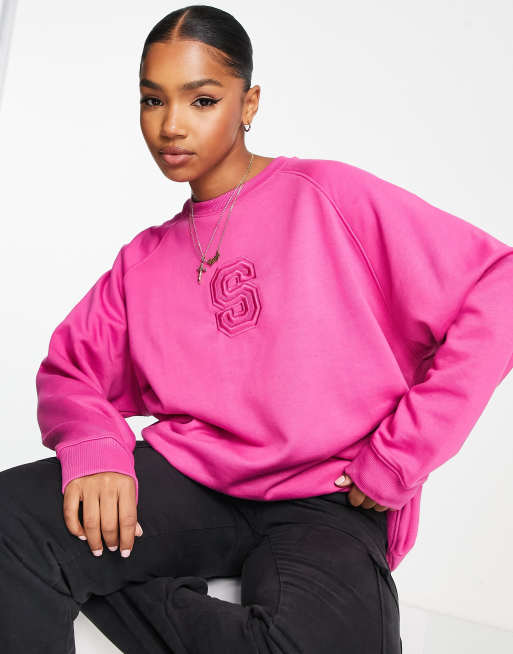 Stradivarius oversized sweatshirt with S embroidery in hot pink