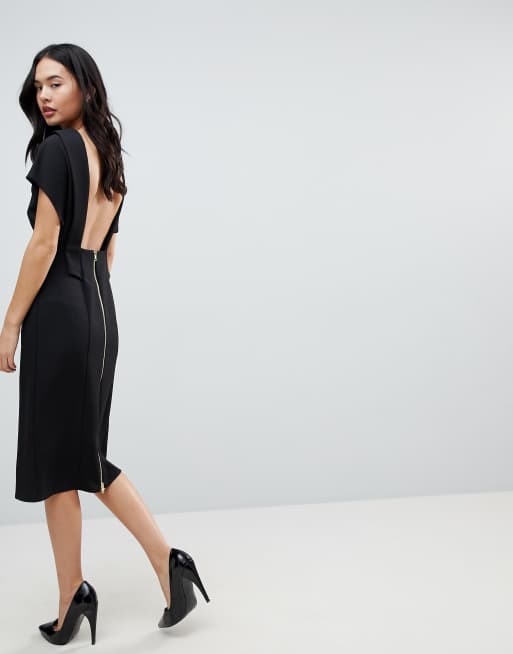 ASOS DESIGN Short Sleeve Midi Pencil Dress With Open Back