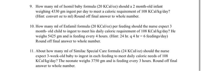Solved 9. How many ml of Isomil baby formula 20KCal oz Chegg