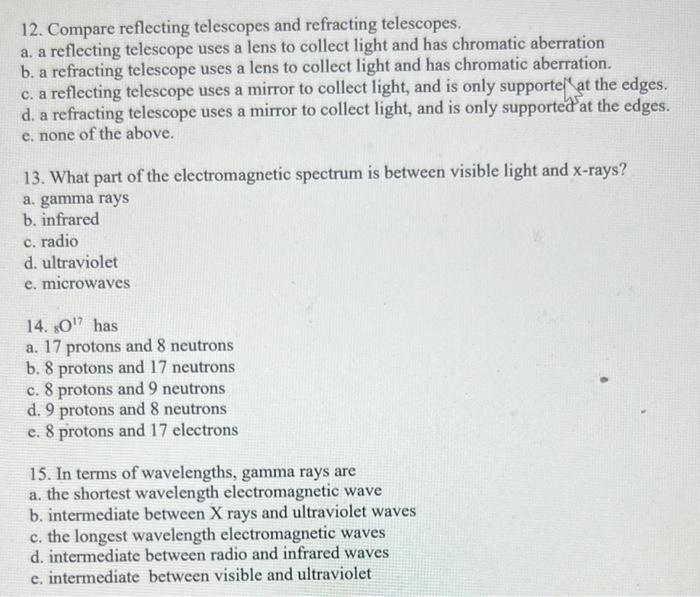 Solved 12. Compare reflecting telescopes and refracting Chegg