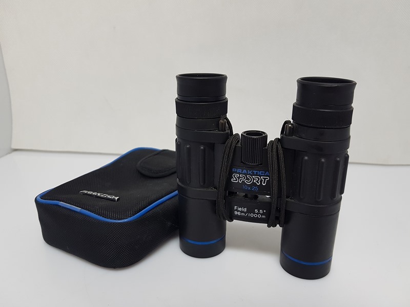 Praktica Sport 10x25 Rubber Coated Compact Binoculars with neck strap instructions and case Very good condition and working