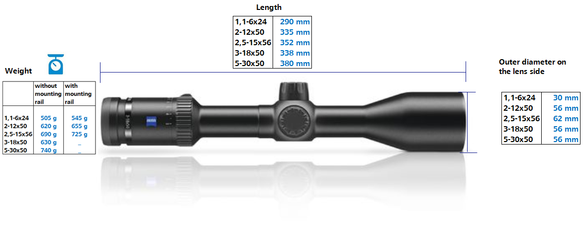 Zeiss 12x50 clearance, What are the measurements of ZEISS riflescopes Conquest DL 1 2 clearance