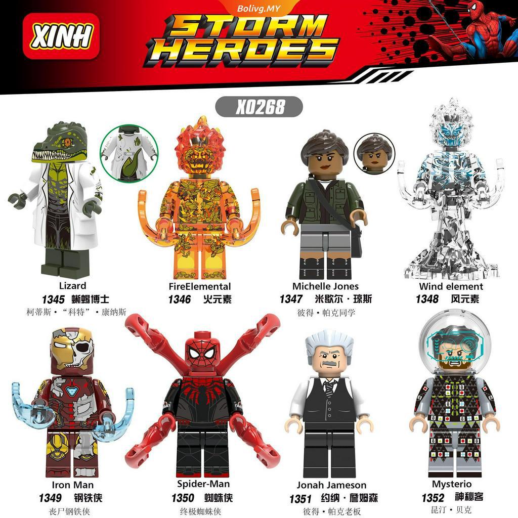 Lego Compatible Minifigures X0268 Super Hero Spiderman Ironman Lizard Building Blocks Toy for Kids Gift New Popular Education Toys Bilove.my