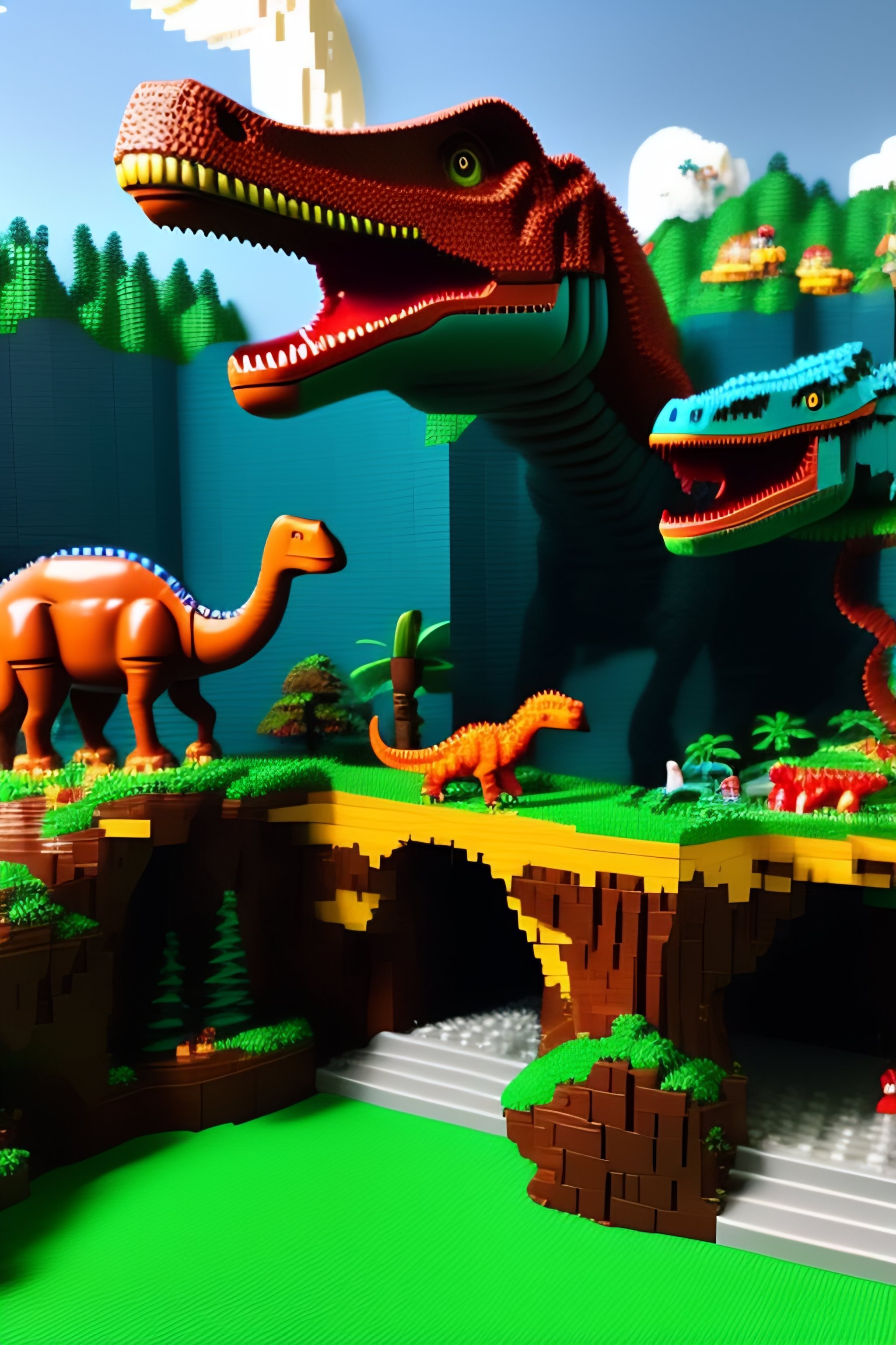Lexica Lego world with Jurassic park setting and flying dinosaurs