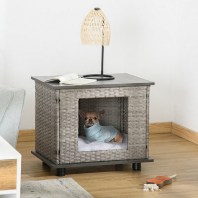 PawHut Wicker Dog House Rattan Pet Bed Cat House End Table