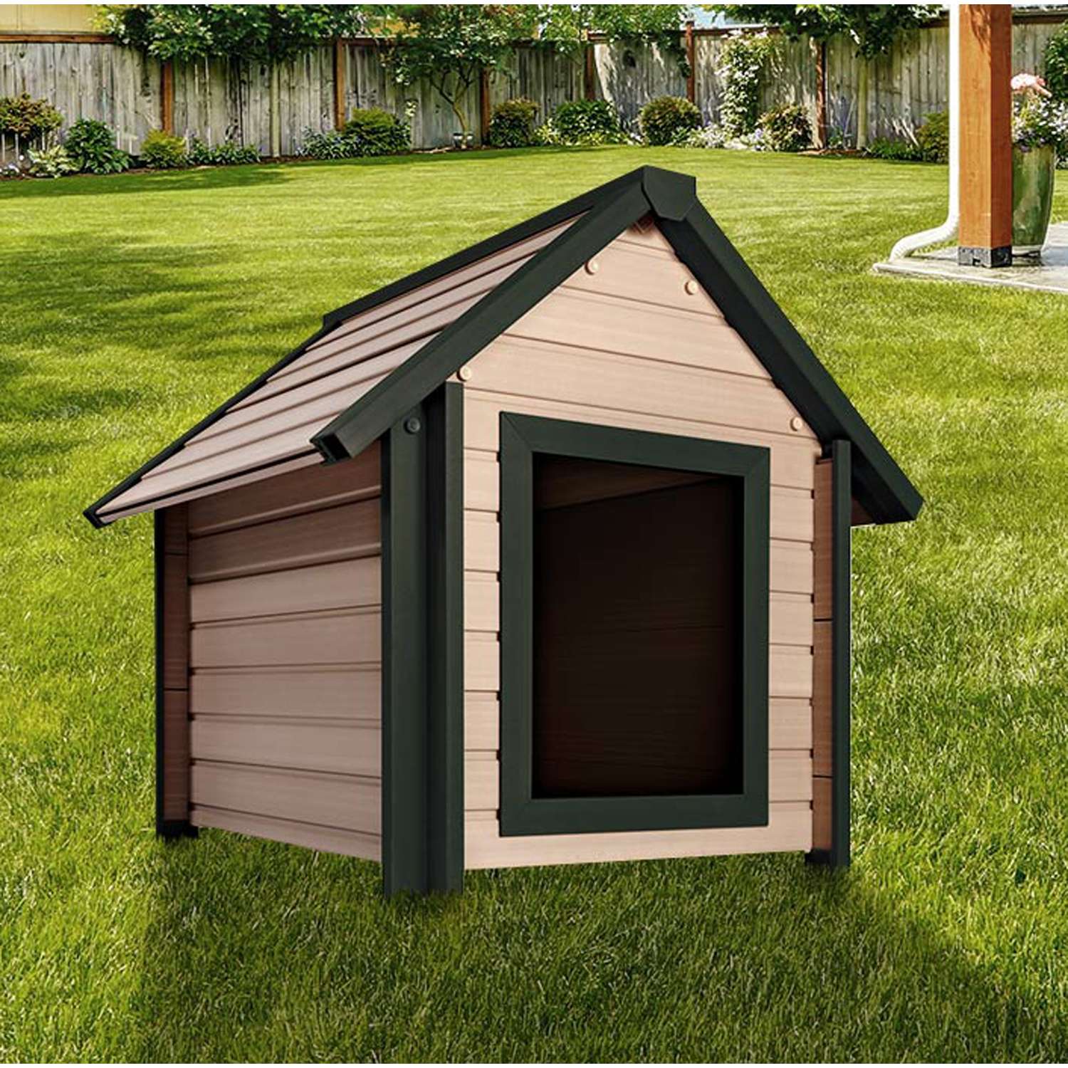 DogiPot Extra Large Wood Polyfiber Dog House Natural Green 38 in. H X 35.5 in. W X 44 in. D