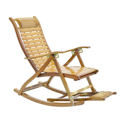Bamboo rocking chair clearance online, Livingandhome Bamboo Foldable Adjustable Recliner Lounge Chair Rocking Chair with Retractable Footrest clearance