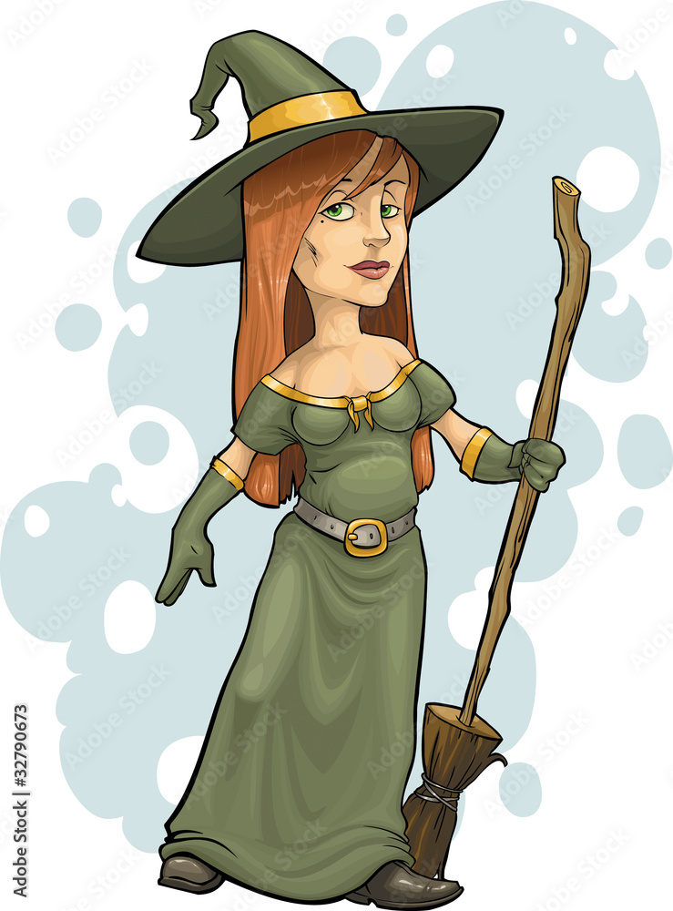 Nice witch clearance, Cute witch with broom. Little witch girl cartoon character clearance