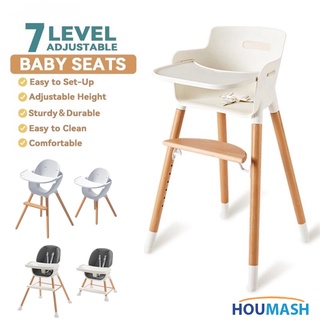 Wooden High Chair for Babies and Toddlers with Harness Removable Tray and Adjustable Legs