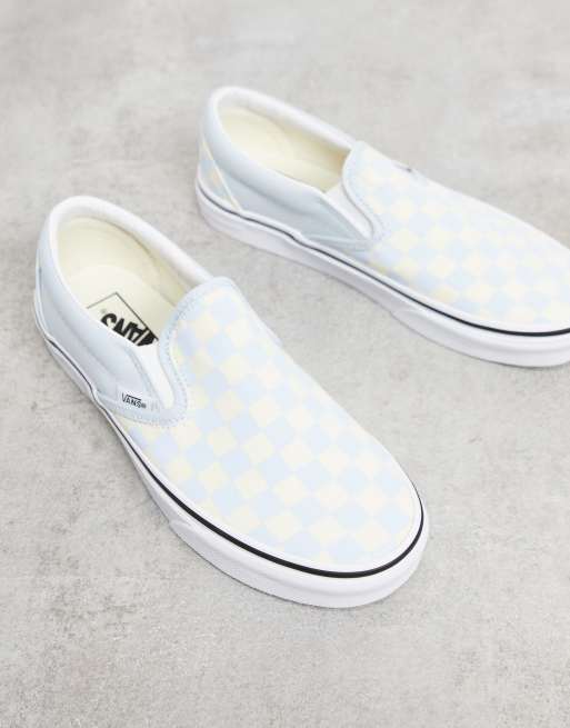 Vans Classic slip on checkerboard sneakers in light blue ASOS