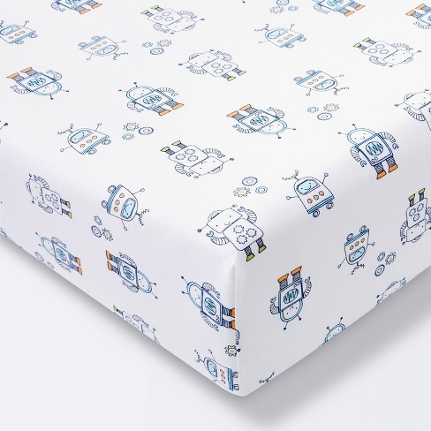 Robot clearance crib sheets, Pfrewn Crib Sheets for Boys Girls Galaxy Space Robot Fitted Crib Sheet for Mini Crib Mattress Stretch Soft Toddler Baby Playard Sheet 39x27x5IN clearance