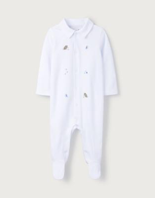 Bear Woodland Embroidered Sleepsuit Baby Clothing The White Company