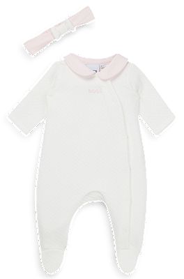 White babygrow with clearance collar, BOSS Gift boxed sleepsuit and headband for babies clearance