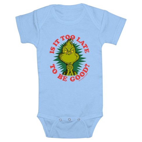 Infant s Dr. Seuss Christmas Is It Too Late Onesie Light Blue