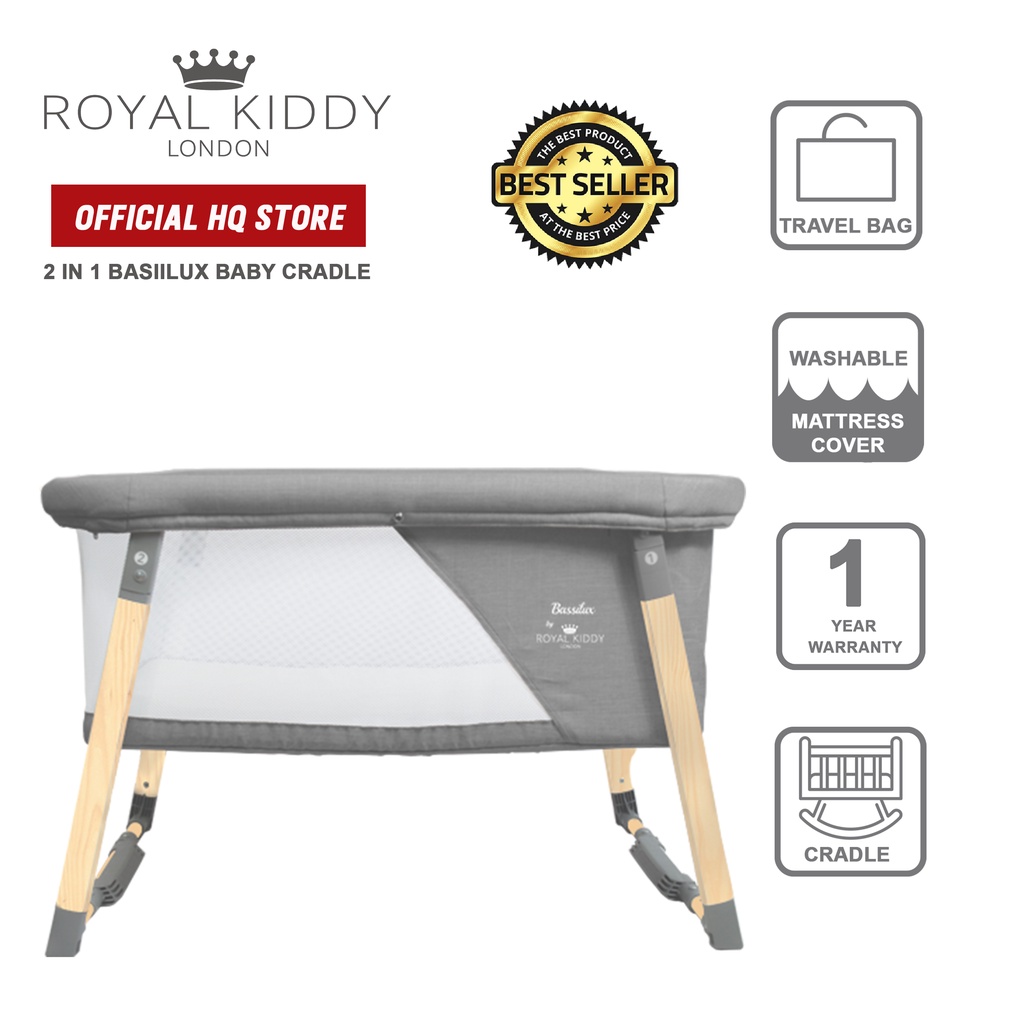 ROYAL KIDDY LONDON 2in1 Bassilux Baby Crib Baby Cot with 4 Accessories Rocking function