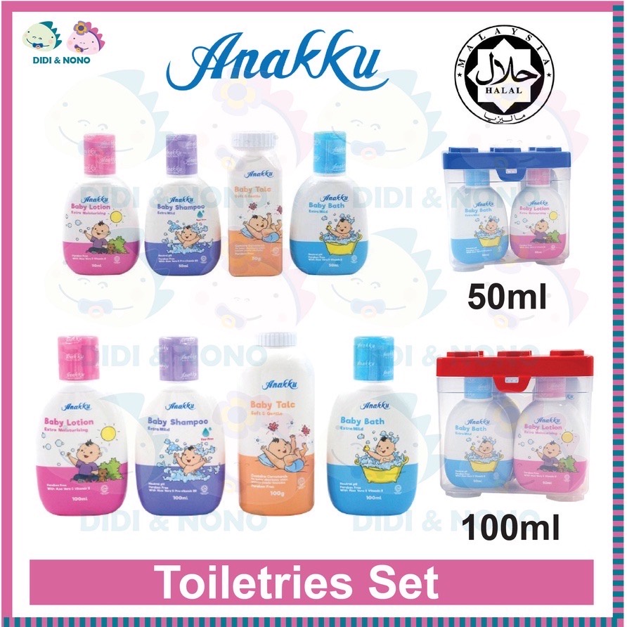 Baby bath toiletries clearance set, Anakku Toiletries Travel Set 100ml 4 in 1 container set mandian clearance