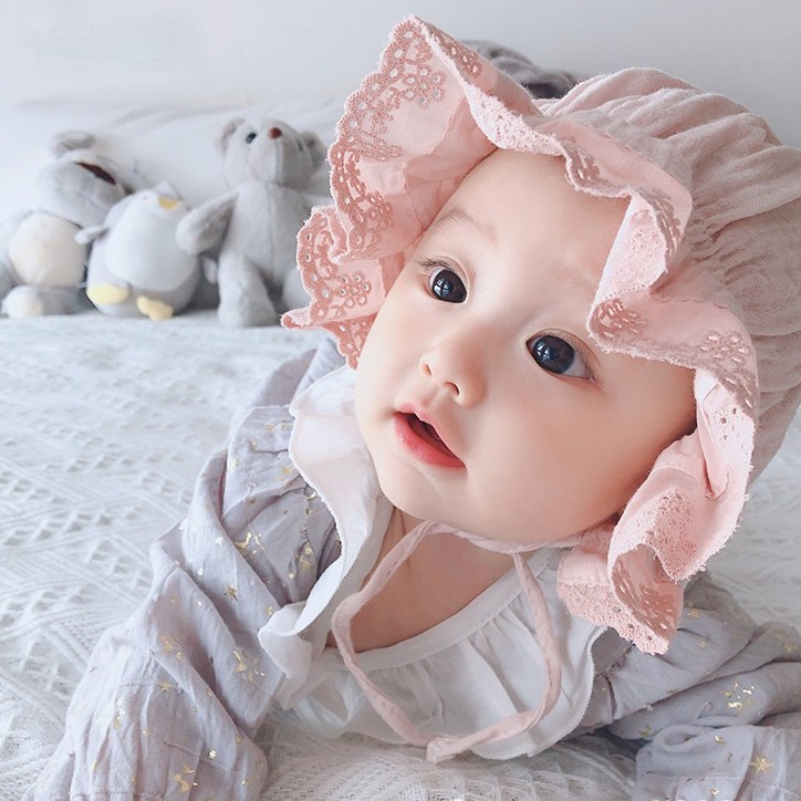 Topi Baby Spring Summer Thin Lace Adjustable Hat Baby Girl Princess Hat Newborn Baby Infant Cotton Cap Cute