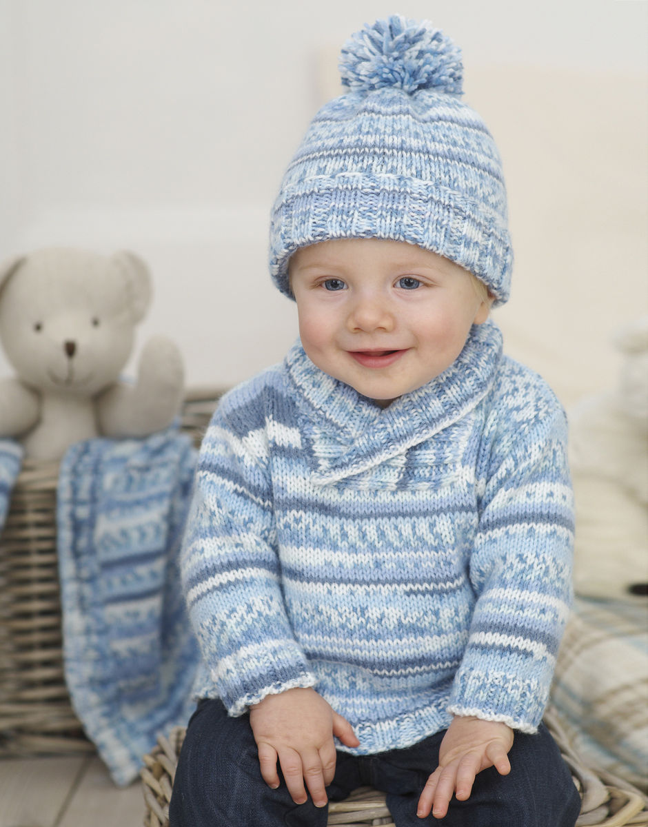 Baby Sweater with Collar Hat Blanket in Snuggly Crofter DK Sirdar