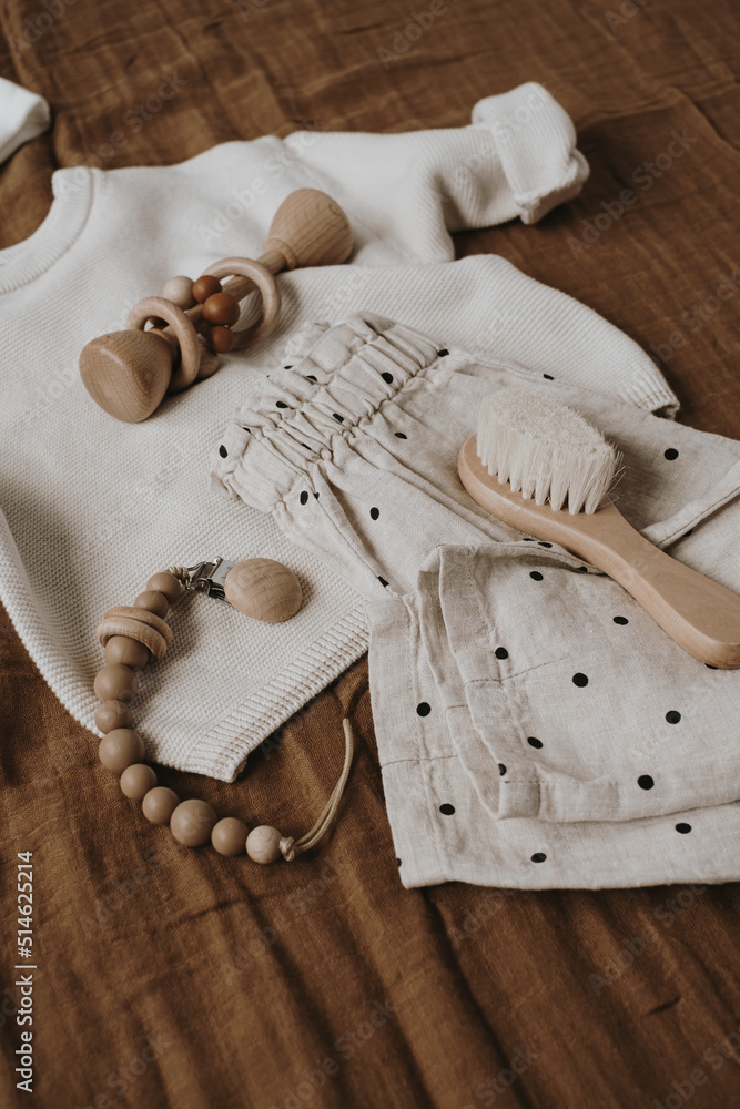 Clothes and accessories for newborn baby. Sweater joggers brush