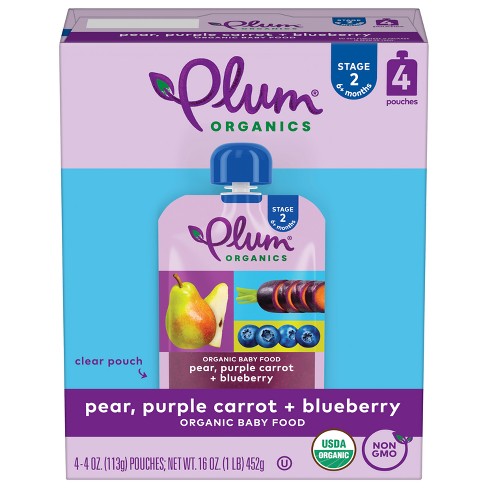 Plum organics blueberry clearance pear purple carrot, Plum Organics Stage 2 Organic Pear Purple Carrot Blueberry 4oz clearance