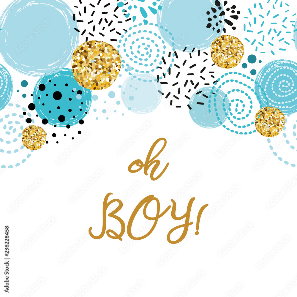 Boy oh boy clearance baby shower, Oh boy cute baby shower with blue gold round elements Boy birthday clearance