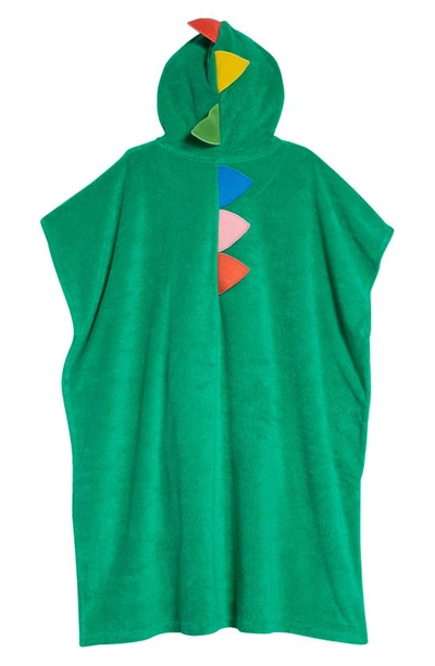 Mini Boden Kids Dinosaur Hooded Towel Poncho In Green Pepper