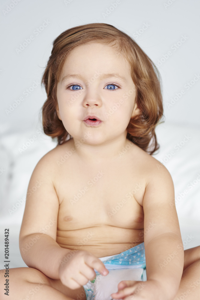 Portrait of cute girl in diaper . Stock Photo Adobe Stock
