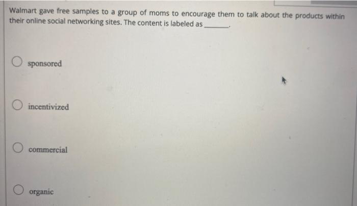 Free samples for clearance moms, Solved Walmart gave free samples to a group of moms to Chegg clearance